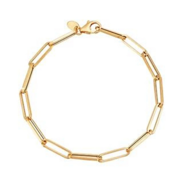 Although it is subtle, this paperclip necklace makes enough of a statement to be worn by itself. This piece is a treasure from the modern era, plated in glistening warm 14k gold. Display this sparkling, distinctive necklace and wear it with the matching paperclip bracelet for the ultimate geometric style to turn heads.